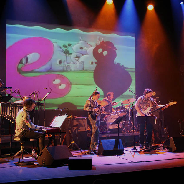 Princesse Mononoké rencontrant Les Barbapapa, Les Fous du Volants poursuivis par Batman ou encore Supermario télescopant Le Livre de la Jungle, Le Sacre du Tympan revisite plusieurs décennies de génériques, connus souvent, oubliés parfois, mais toujours ancrés dans la mémoire collective. Les concerts seront l’occasion de faire découvrir aux jeunes de 7 à 107 ans une large palette de timbres et d’objets sonores à travers des arrangements jubilatoires écrits pour l’occasion par Fred Pallem.